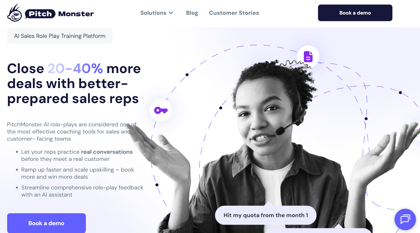 PitchMonster delivers gamified pitch practice designed for SDRs and junior sales reps. At $21 per user/month, it offers simple AI scenarios with scoring, leaderboards and quick deployment. While it lacks the depth of executive training, it works well for cost-conscious sales teams that want lightweight roleplay with engagement features.