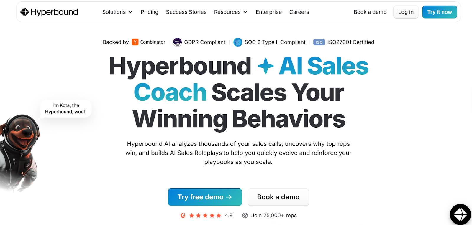 - Starter Plan ($99/month): Up to five users, 50 AI sessions, one methodology, CRM integrations, and mobile access.