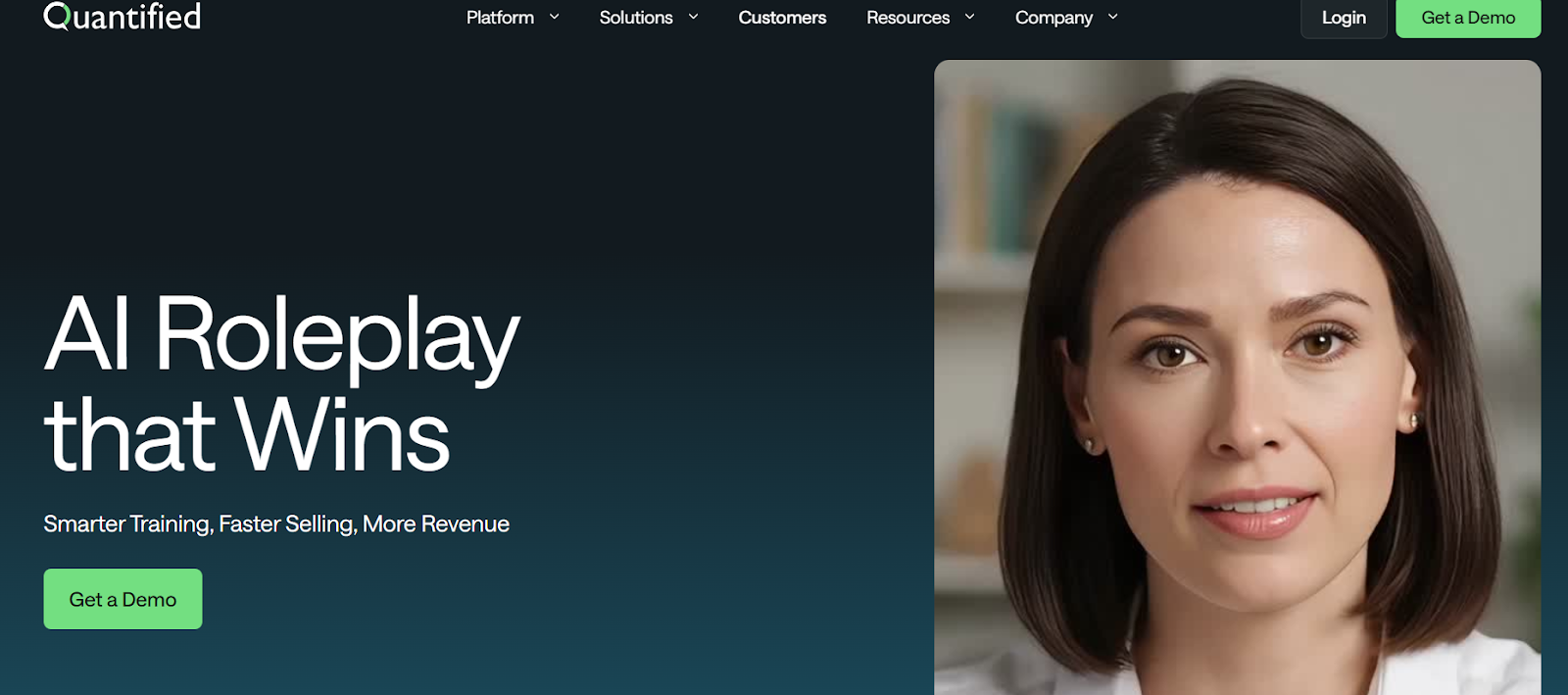 Quantified relies on a custom pricing model tailored for enterprise deployments. Its main strength lies in lifelike, AI-driven roleplays with photorealistic avatars, combined with deep communication analytics and performance benchmarking. The platform is positioned as a premium solution for companies that want advanced, immersive simulations.